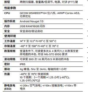 斑馬TC25安卓手持終端 產品規格表